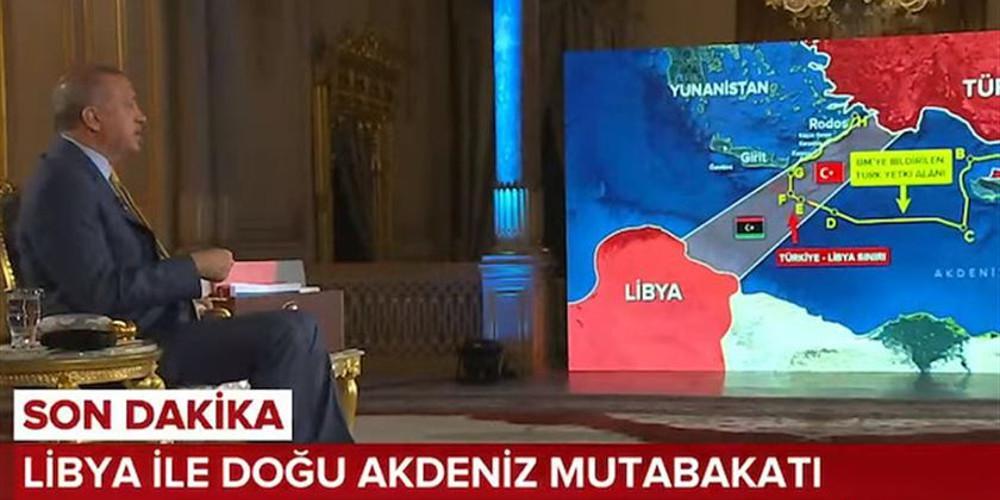 Την πραγματοποίηση ερευνών και γεωτρήσεων στις περιοχές που ορίζει η συμφωνία Τουρκίας-Λιβύης ακόμη και κοντά στη Ρόδο και στην Κρήτη προανήγγειλε χθες ο Ρετζέπ Ταγίπ Ερντογάν σε συνέντευξή του στην κρατική τηλεόραση της Τουρκίας.