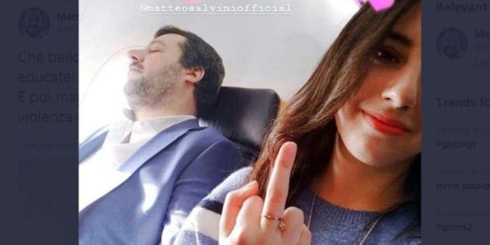 «Εγώ τράβηξα τη φωτογραφία για να επισημάνω την σύμπτωση του να ταξιδεύεις σε πτήση χαμηλού κόστους έχοντας δίπλα σου τον Σαλβίνι. Η χειρονομία απευθυνόταν στους φίλους μου και δεν είχε να κάνει τίποτα με τον Σαλβίνι τον οποίο εξάλλου “περικύκλωσα” με καρδούλες», είπε η 19χρονη αντιλαμβανόμενη τον σάλο που έχει προκληθεί.