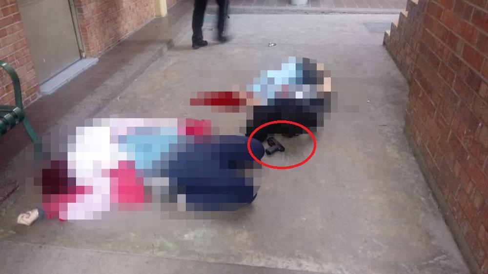 Σε εικόνες που είδαν το φως της δημοσιότητας στα μέσα κοινωνικής δικτύωσης από το σημείο του εγκλήματος, διακρίνονται δύο άνθρωποι να κείτονται, πιθανόν στο πάτωμα του σχολείου, μέσα σε λίμνη αίματος, ενώ τα πρόσωπά τους τα έχουν καλύψει με σεντόνια. Ένα πιστόλι βρίσκεται ανάμεσά τους.