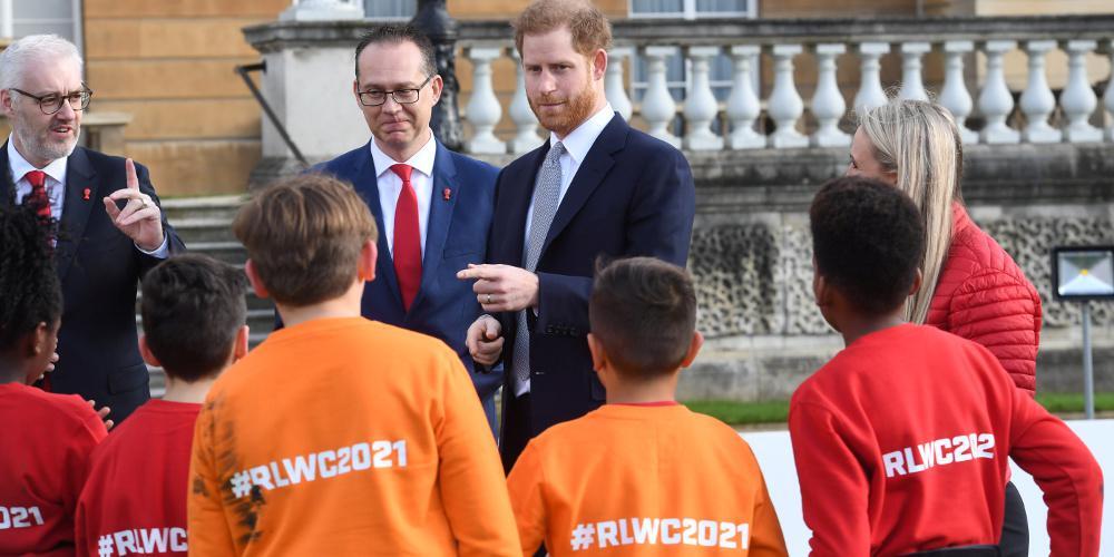 Ο πρίγκιπας, έκτος στην σειρά διαδοχής, παρακολούθησε παιδιά να παίζουν ράγκμπι στον κήπο του ανακτόρου του Μπάκιγχαμ, πριν κάνει την κλήρωση για το Παγκόσμιο Κύπελλο του αθλήματος το 2021.