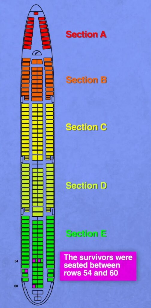 Όλες κάθονταν στις πίσω σειρές του αεροπλάνου — από τη σειρά 54 έως τη σειρά 60.