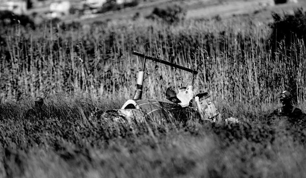 Σε ακόμα μία φωτογραφία η Εθνική Υπηρεσία Ασφάλεια Μεταφορών αποτυπώνει την ένταση της σύγκρουσης σε χάρτη στον οποίο καταγράφονται τα σημεία της συντριβής αλλά και η διασπορά των διάφορων τμημάτων του ελικοπτέρου.