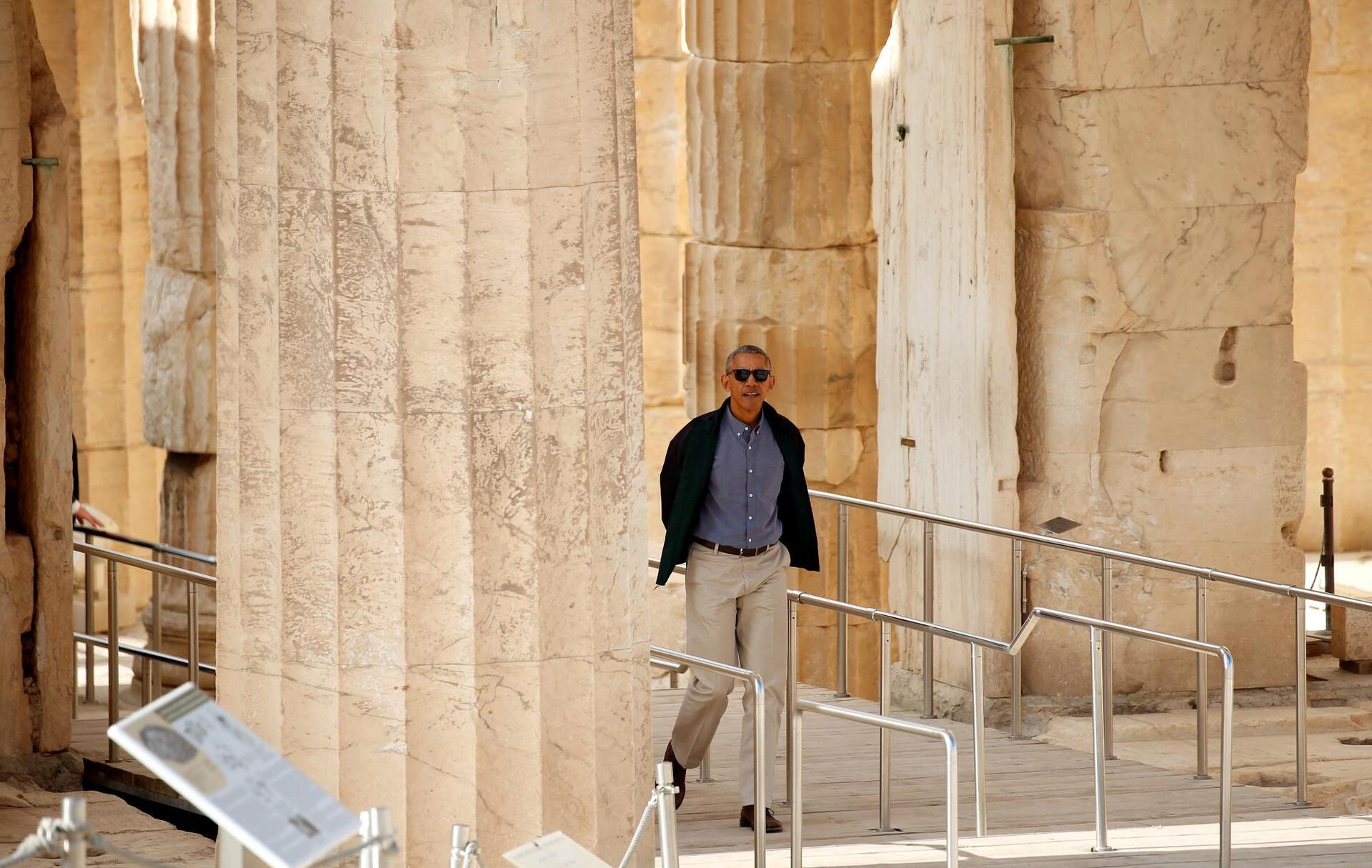 «Έχουμε πίσω μας τον Παρθενώνα, την Ακρόπολη και ένα μέρος της Αθήνας» λέει ο πρόεδρος των ΗΠΑ επαναλαμβάνοντας ότι «εδώ στην Αθήνα ξεκίνησαν να αναπτύσσονται ιδέες όπως η δημοκρατία και η έννοια του πολίτη». Ο κ. Ομπάμα αναφέρεται επίσης στην έννοια της συνέχειας που υπάρχει «με ό,τι συνέβη εδώ με τις ομιλίες του Περικλή και των ιδρυτών του κράτους μας».