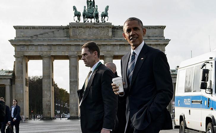 Μετά την επίσκεψή του στην Αθήνα και να δρακόντεια μέτρα ασφαλείας, την υποχρεωτική μεταφορά με αυτοκίνητα από τη Βουλιαγμένη στο Προεδρικό Μέγαρο και τούμπαλιν και φαίνεται πως ευχαριστήθηκε, τη μικρή, αλλά απολαυστική βόλτα, μπροστά από το επιβλητικό μνημείο του Βερολίνου, παρέα με ένα καφεδάκι.