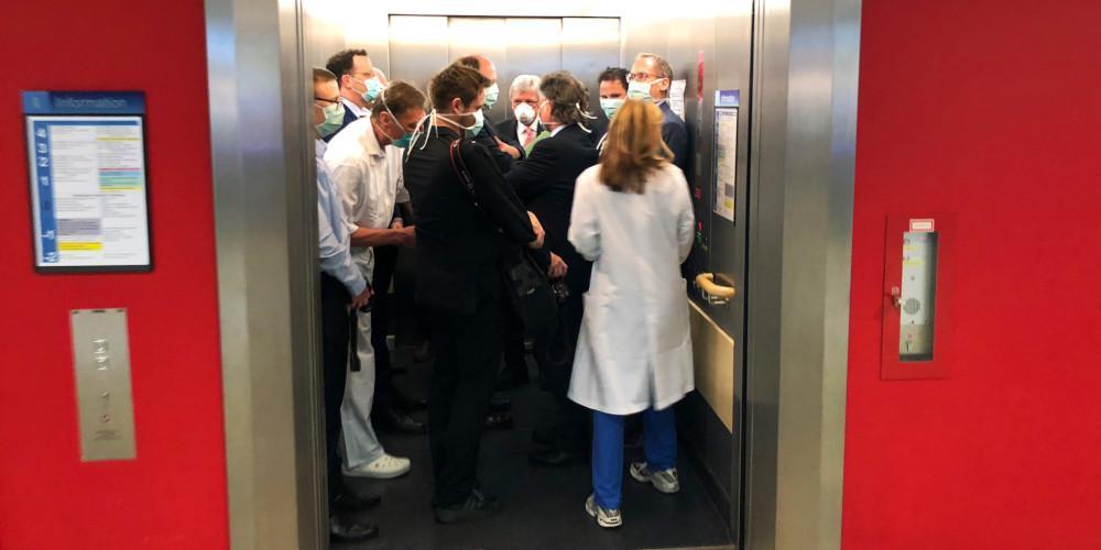 Ενώ η ελάχιστη απόσταση είναι από τα βασικά μέτρα για την παρεμπόδιση της εξάπλωσης του κορωνοϊού, ήταν ο ίδιος ο Γενς Σπαν που μπήκε στο ασανσέρ του πανεπιστημιακού νοσοκομείου της πόλης Γκίσεν μαζί με τον διευθυντή της καγκελαρίας Χέλγκε Μπράουν, τον πρωθυπουργό του κρατιδίου της Έσσης Φόλκερ Μπουφιέ και άλλους κυβερνητικούς παράγοντες της περιοχής. Βέβαια, όλοι φορούσαν μάσκα, αλλά όπως τονίζουν συνεχώς οι ειδικοί αυτό δεν αρκεί για την 100% προστασία μας.
