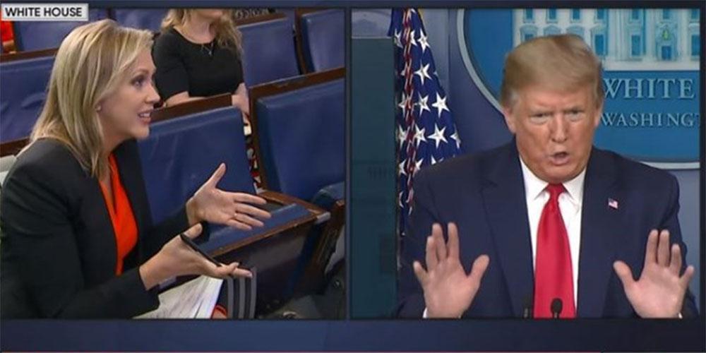 Στην διάρκεια του μεταξύ τους διαλόγου, μπροστά στις κάμερες, ο Τραμπ έκανε επίθεση στο κανάλι της δημοσιογράφου, λέγοντας πως προβάλει fake news, ενώ υπερασπίστηκε τον εαυτό του, λέγοντας πως τον Ιανουάριο δεν υπήρχε ούτε ένα κρούσμα και τότε κανείς δεν υπήρχε που να πιστεύει πως έπρεπε να παρθούν δραστικά μέτρα. Και συνέχισε λέγοντας πως έπραξαν το σωστό και πως αν λειτουργούσαν διαφορετικά, ίσως τα θύματα να ήταν πολλές δεκάδες χιλιάδες περισσότερα, απ΄ότι εκτιμάται αυτή την περίοδο. Επί της ουσίας ωστόσο δεν απάντησε στην ερώτηση της δημοσιογράφου, σε ένα ασυνήθιστο επεισόδιο σε συνέντευξη Τύπου στον Λευκό Οίκο.