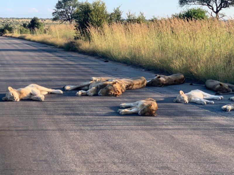 Στο Εθνικό Πάρκο Krueger της Νότιας Αφρικής, τα λιοντάρια βρήκαν την ευκαιρία αφού οι άνθρωποι απουσιάζουν για να κοιμηθούν στη μέση του δρόμου.