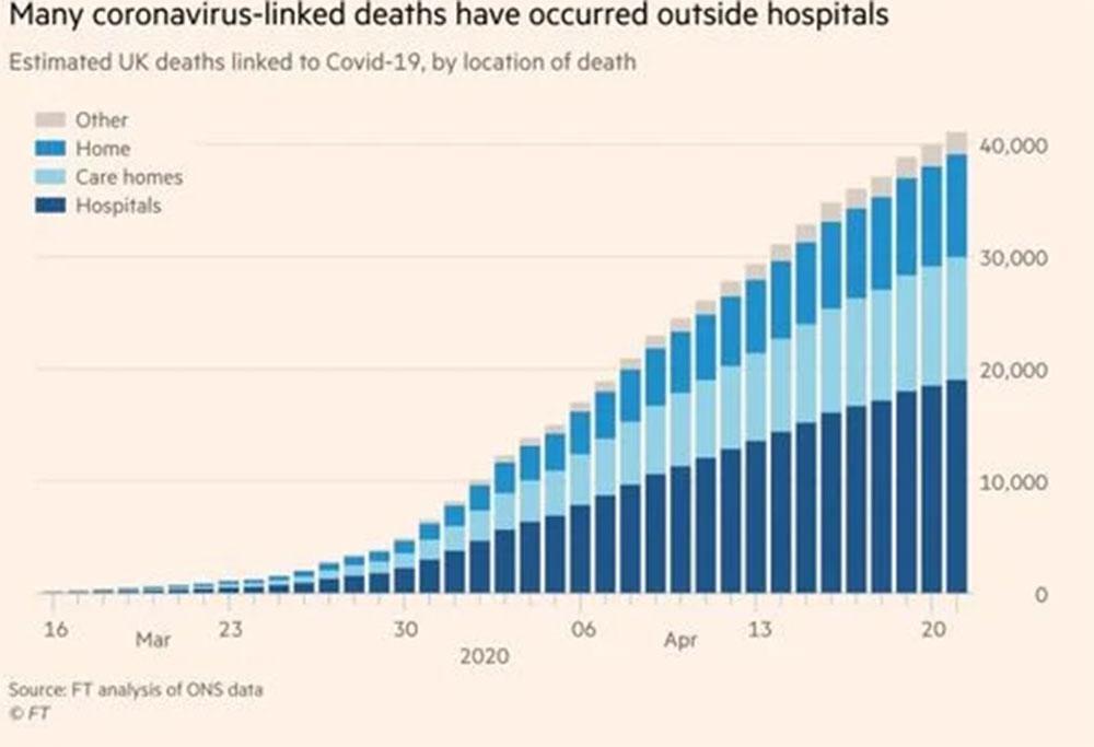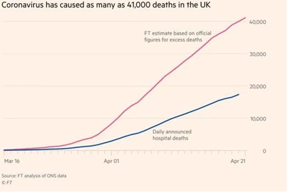 Μέχρι χθες βράδυ, η κυβέρνηση της Βρετανίας κατέγραφε επισήμως 17.337 θανάτους εξαιτίας του COVID-19, επί συνόλου 129.044 επιβεβαιωμένων κρουσμάτων μόλυνσης από τον SARS-CoV-2.