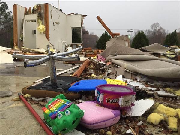 Στο Ίντερ στην Αλαμπάμα, τέσσερα παιδιά και αρκετοί ενήλικες τραυματίστηκαν όταν ένας ανεμοστρόβιλος ισοπέδωσε έναν παιδικό σταθμό σύμφωνα με την Εθνική Μετεωρολογική Υπηρεσία. Τα θύματα αναζητούσαν καταφύγιο στο εσωτερικό του παιδικού σταθμού, ο οποίος εκείνη τη στιγμή δεν λειτουργούσε.