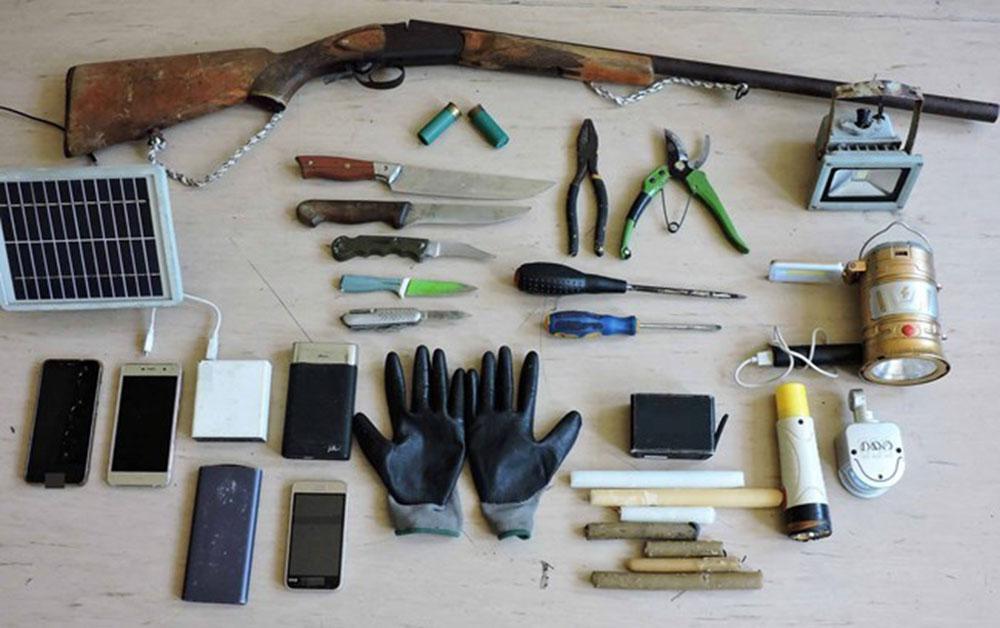 Όπως ανακοινώθηκε από τις Αρχές μετά τη σύλληψη, ο 47χρονος είχε στην κατοχή του ένα μικρό «οπλοστάσιο», μιας και από τις έρευνες που πραγματοποιήθηκαν στην ευρύτερη περιοχή, καθώς και επάνω του, βρέθηκαν από τους αστυνομικούς μεταξύ άλλων, οπλισμένο κυνηγητικό μονόκαννο όπλο, δύο φυσίγγια, μαχαίρια, σουγιάδες καθώς και εξοπλισμός διαβίωσης στην ύπαιθρο.