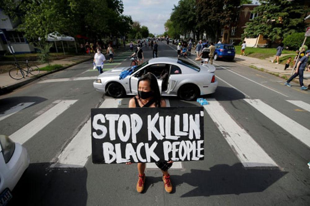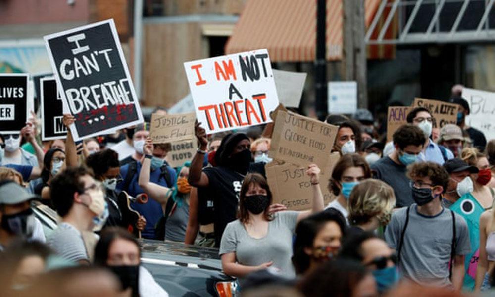 Λίγες ώρες μετά την αποπομπή των αστυνομικών, χιλιάδες διαδηλωτές γέμισαν τους δρόμους γύρω από το σημείο που εκτυλίχθηκε η τραγωδία τη Δευτέρα το βράδυ, με πολλούς διαδηλωτές να φορούν μάσκα λόγω της επιδημίας του κορωνοϊού.