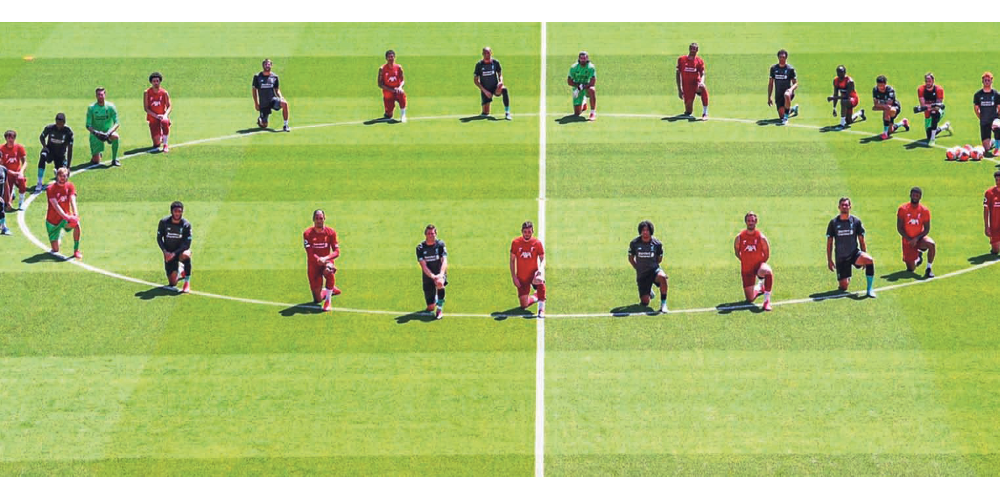 Σαφές μήνυμα κατά του ρατσισμού έστειλαν οι παίκτες της Λίβερπουλ, οι οποίοι στη χθεσινή προπόνηση σχημάτισαν κύκλο γονατίζοντας, ως ένδειξη διαμαρτυρίας για τη δολοφονία του 46χρονου Αφροαμερικανού.