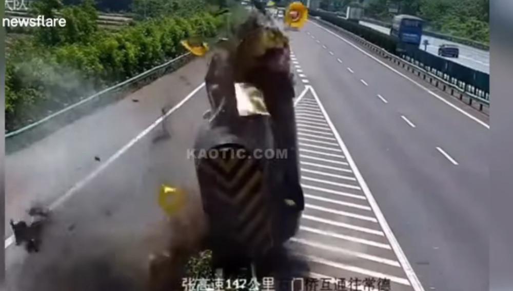 Όπως θα δείτε και στο βίντεο παρακάτω ένα αυτοκίνητο που κινούνταν με μεγάλη όπως φαίνεται ταχύτητα σε ένα δρόμο ταχείας κυκλοφορίας στην Κίνα φεύγει από την πορεία του και πέφτει με μεγάλη δύναμη μετωπικά σε ένα στηθαίο.