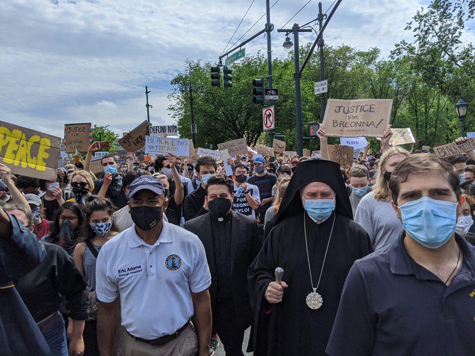 Ο Αρχιεπίσκοπος Ελπιδοφόρος είχε αναφερθεί στην πορεία από το λογαριασμό του στο twitter: «Ηρθα στο Μπρούκλιν με τον πρόεδρο Ερικ Ανταμς και τον πολιτειακό γερουσιαστή Αντριου Γουνάρδη για μια ειρηνική διαμαρτυρία για αλληλεγγύη με τις αδελφές μου και τους αδελφούς μου… Θα συνεχίσω να παραμένω ενάντια στις παραβιάσεις μαζί με όλους εκείνους που έχουν δεσμευτεί να διατηρήσουν την ειρήνη, τη δικαιοσύνη και την ισότητα για κάθε πολίτη, ανεξάρτητα από τη φυλή, τη θρησκεία, το φύλο ή την εθνική καταγωγή του».