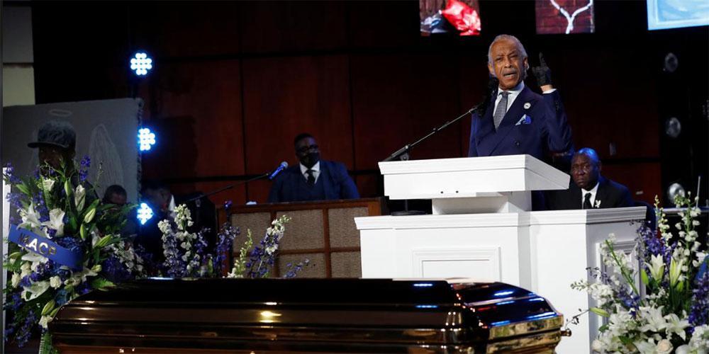 Ο αιδεσιμότατος Αλ Σάρπτον, ιδρυτής του Εθνικού Δικτύου Δράσης, διάβασε ευλογία για να τιμήσει τον Φλόιντ, δίνοντας μία πολύ δυναμική ομιλία ταυτόχρονα.