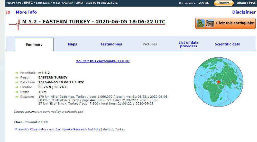 Detay : https://t.co/4kbu1ie3Vm@afadbaskanlik @trthaber @anadoluajansi— AFAD Deprem (@DepremDairesi) June 5, 2020