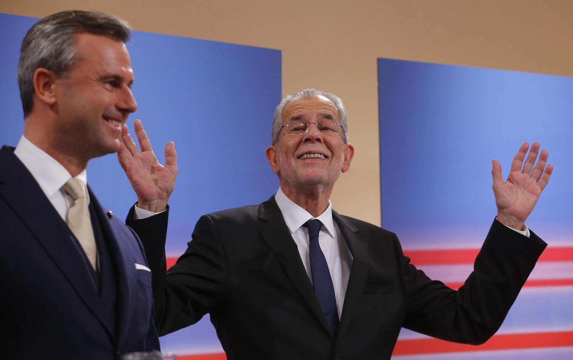 Ο 72χρονος καθηγητής Οικονομικών στο Πανεπιστήμιο και πρώην αρχηγός των Πρασίνων, Αλεξάντερ βαν ντερ Μπέλεν, έχει υποσχεθεί πως θα κάνει ό,τι μπορεί ως πρόεδρος, για να εμποδίσει την πιθανότητα σχηματισμού κυβέρνησης μελλοντικά, από το ακροδεξιό κόμμα (αν αυτό κερδίσει το 2018). Αν και ο ρόλος του προέδρου στην Αυστρία είναι περιορισμένος, ωστόσο, έχει λόγο στην εντολή σχηματισμού κυβερνήσεων. Ο Βαν ντερ Μπέλεν είχε κατηγορήσει τον Χόφερ ότι αν εκλεγεί πρόεδρος θα ωθήσει την Αυστρία σε ένα δημοψήφισμα για έξοδο της χώρας από την Ε.Ε. (Oexit). Ο Βαν ντερ Μπέλεν έχει τονίσει πολλές φορές την πίστη του στην ευρωπαϊκή πολιτική κατακρίνοντας τον Χόφερ για τη στάση του. Παρά τη διαφαινόμενη ήττα του Χόφερ, το Κόμμα των Ελευθέρων φέρεται να συγκεντρώνει σταθερά σε όλες τις δημοσκοπήσεις σχεδόν 30%, προκαλώντας ανησυχία για τις βουλευτικές εκλογές που θα γίνουν σε ενάμιση χρόνο.