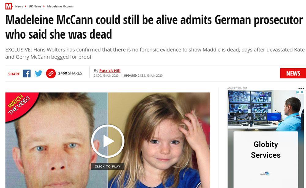 Ειδικότερα, ο Γερμανός εισαγγελέας αποκάλυψε στη Mirror ότι δεν υπάρχουν αποδείξεις που να «δείχνουν» ότι η Μαντλίν είναι νεκρή.