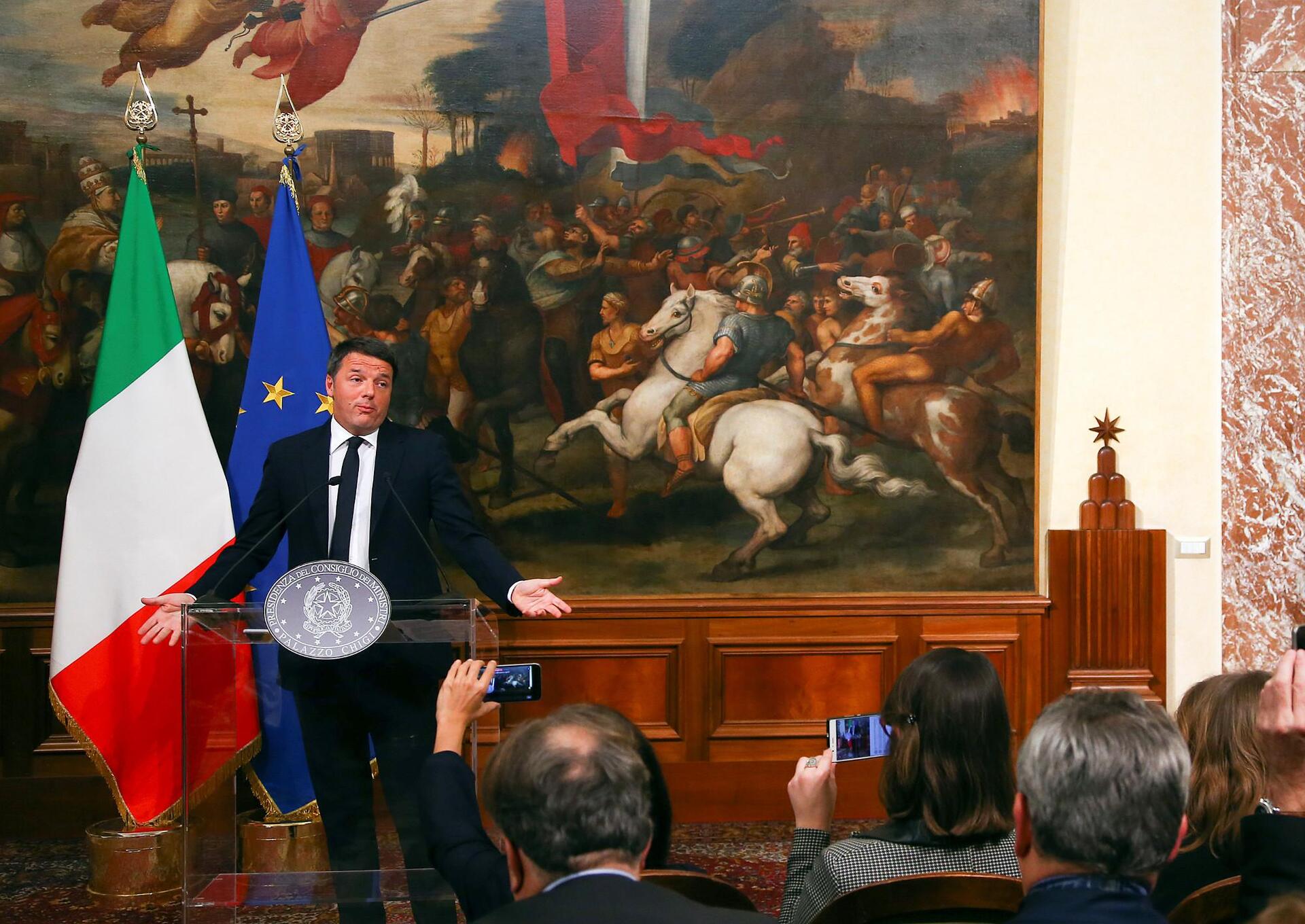 «Υπάρχουν δεσμευτικές ημερομηνίες», φέρεται να είπε ο πρόεδρος στον παραιτηθέντα πρωθυπουργό, καλώντας τον να μην ταράξει την πολιτική ζωή της χώρας και να παγώσει την παραίτησή του μέχρι την Παρασκευή, οπότε αναμένεται η ψήφιση του προϋπολογισμού. Ο Ματέο Ρέντσι, ο οποίος συναντήθηκε το μεσημέρι με τον πρόεδρο της Ιταλικής Δημοκρατίας και στη συνέχεια ανακοίνωσε σε συνεδρίαση του υπουργικού συμβουλίου την παραίτησή του, επανήλθε στο Κυρηνάλιο (προεδρικό μέγαρο), όπου φαίνεται ότι πείστηκε από τον πρόεδρο να παραμείνει για ένα χρονικό διάστημα.