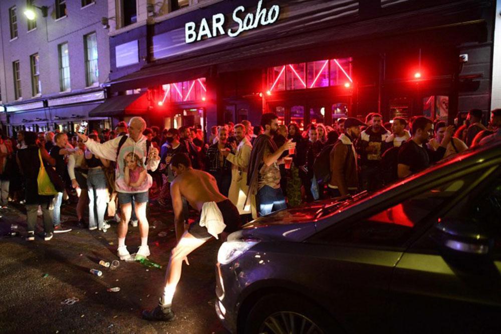 Ωστόσο, σημειώνει o Guardian, οι εικόνες συνωστισμού από τις παμπ στο Σόχο του Λονδίνου τη νύχτα του Σαββάτου δεν ήταν ενθαρρυντικές