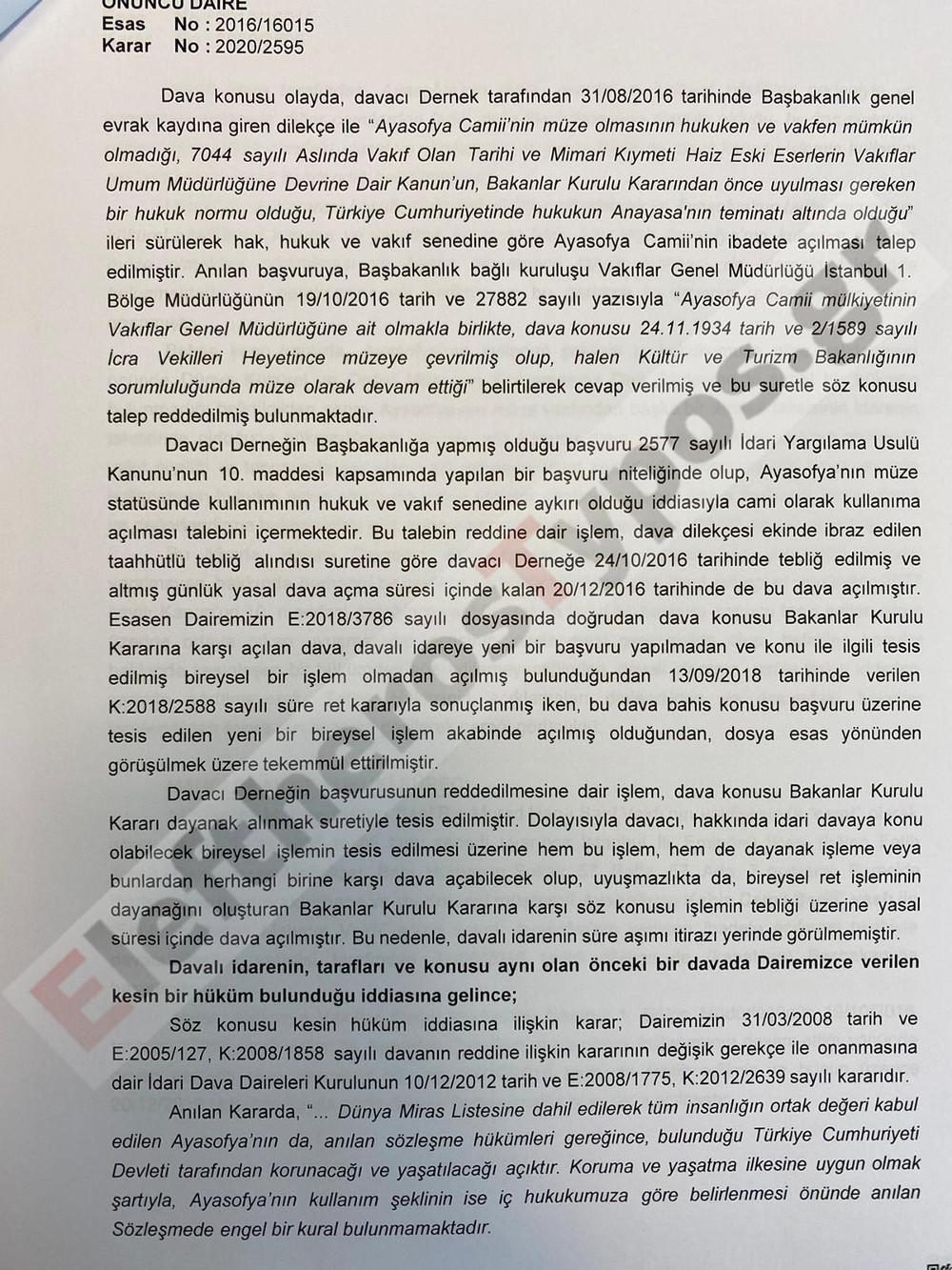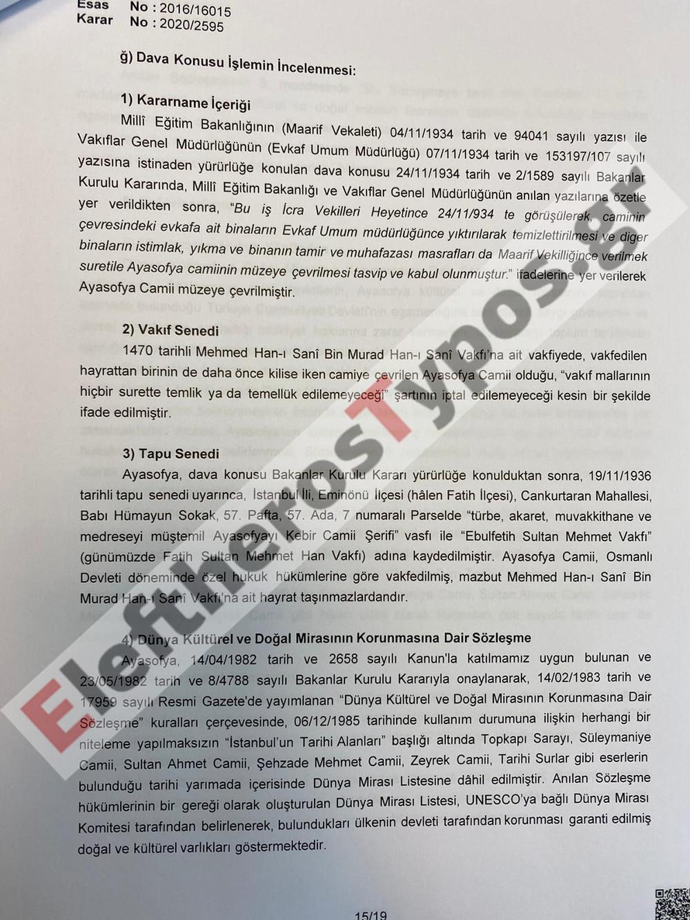 Το EleftherosTypos.gr σας παρουσιάζει όλη την απόφαση του τούρκικου ΣτΕ για την Αγία Σοφία: