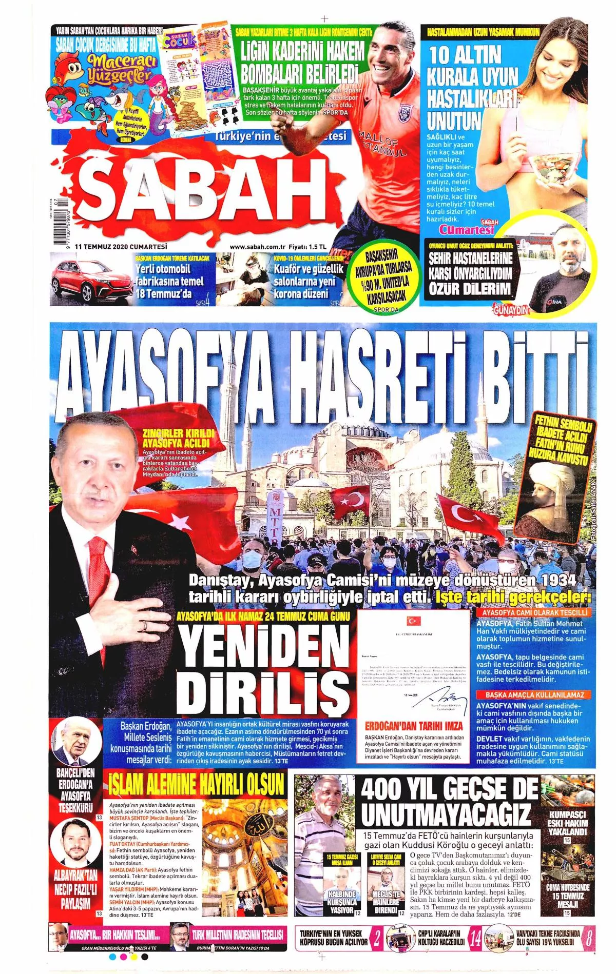 ΗURRIYET: Ανοίγει η Αγία Σοφία. Θα είναι ανοιχτή και για προσευχή και για τους τουρίστες. Οι αγιογραφίες θα καλυφθούν με ειδική τεχνολογία και φωτισμό.