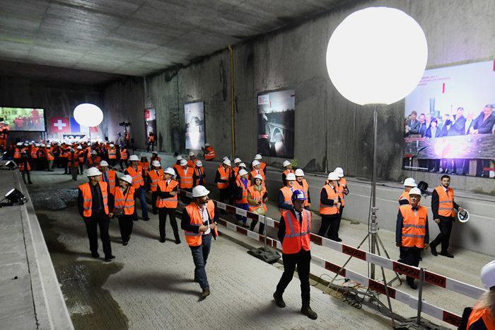 Τα εγκαίνια της σήραγγας είχαν γίνει τον Ιούνιο από τον πρόεδρο της ελβετικής συνομοσπονδίας Γιόχαν Σνάιντερ-Άμαν, παρουσία του γάλλου προέδρου Φρανσουά Ολάντ, της γερμανίδας καγκελαρίου Άγγελα Μέρκελ, του ιταλού πρωθυπουργού Ματέο Ρέντσι και του αυστριακού καγκελαρίου Κρίστιαν Κερν.