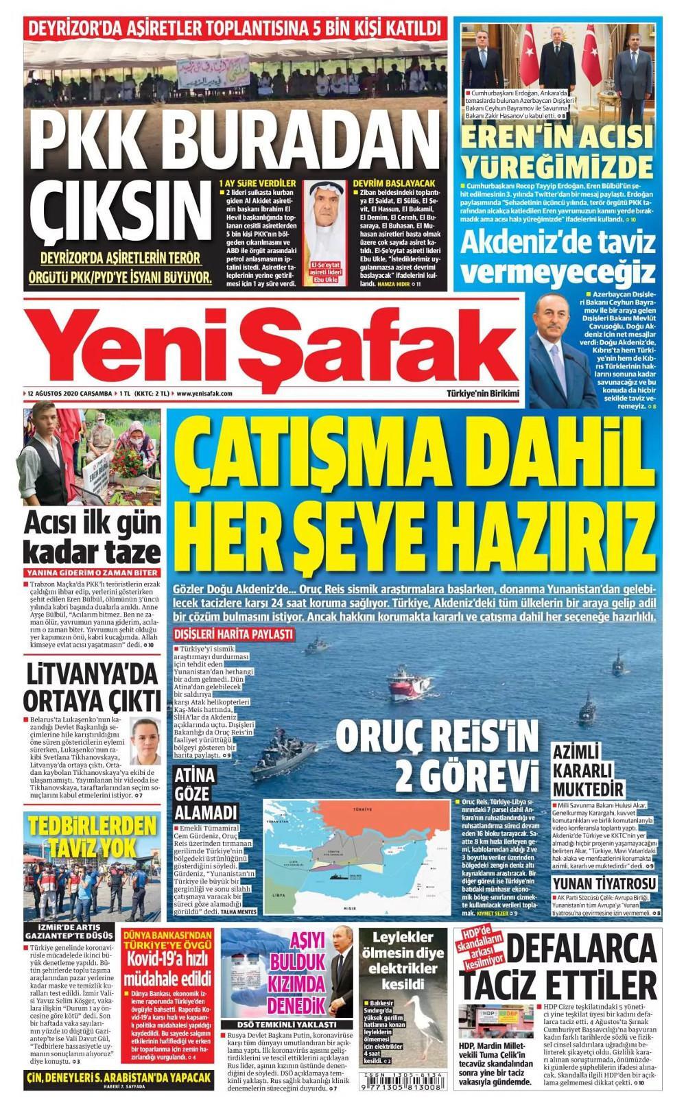 Σε σημερινά δημοσιεύματα τους μιλούν ακόμα και για πολεμική ικανότητα της χώρας. Χαρακτηριστικό είναι το δημοσίευμα της YENI SAFAK με τίτλο «είμαστε έτοιμοι για όλα και για σύγκρουση» ενώ αναφέρει επίσης πως «η Τουρκία είναι αποφασισμένη να υπερασπιστεί τα δικαιώματα της και είναι έτοιμη για όλα τα ενδεχόμενα και για σύγκρουση».