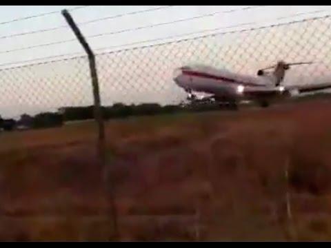 Στο πρώτο βίντεο καταγράφεται η στιγμή που το αεροπλάνο της εταιρείας Aerosucre τροχιοδρομεί στον διάδρομο απογείωσης του αεροδρομίου German Olano.