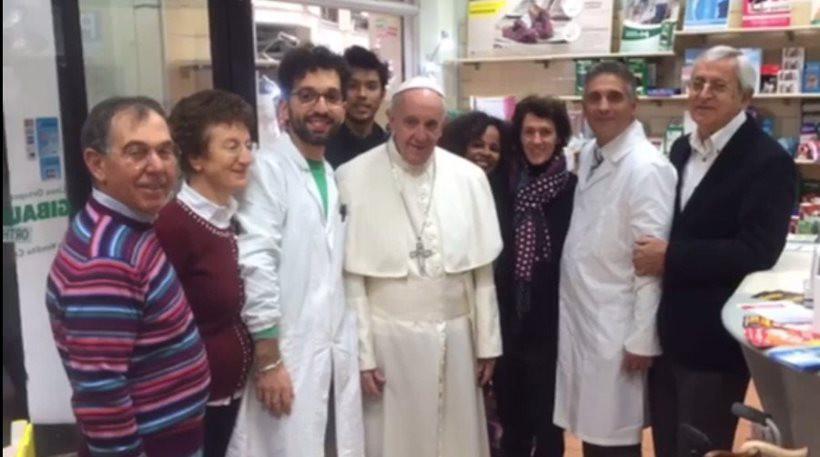Ο Πάπας δεν αρνήθηκε να φωτογραφηθεί με αρκετούς από τους πιστούς, ενώ ευλόγησε και τον σταυρό ενός υπαλλήλου του φαρμακείου.
