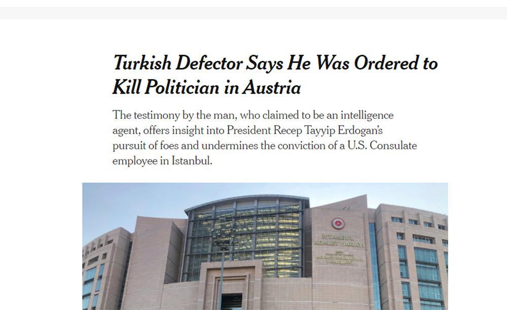 Οι New York Times αναφέρονται στο κυνήγι των αντιπάλων του Ερντογάν στο εσωτερικό και το εξωτερικό μετά το αποτυχημένο πραξικόπημα του 2016 και σημειώνει ότι για την κυβέρνηση της Αυστρίας, που ανησυχεί εδώ και καιρό για την επιρροή των τουρκικών μυστικών υπηρεσιών στη χώρα, η τελευταία αυτή υπόθεση σήμανε συναγερμό.