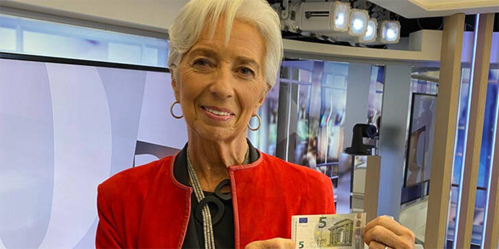 Η κ. Λαγκάρντ φωτογραφήθηκε με τα νέα χαρτονομίσματα που πλέον θα έχουν την δική της υπογραφή.