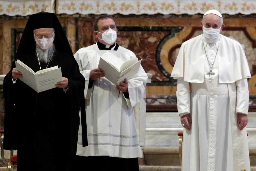 Ο 83χρονος Φραγκίσκος παρέστη στη λειτουργία μαζί με άλλους Χριστιανούς ηγέτες, μεταξύ αυτών τον Οικουμενικό Πατριάρχη Βαρθολομαίο.