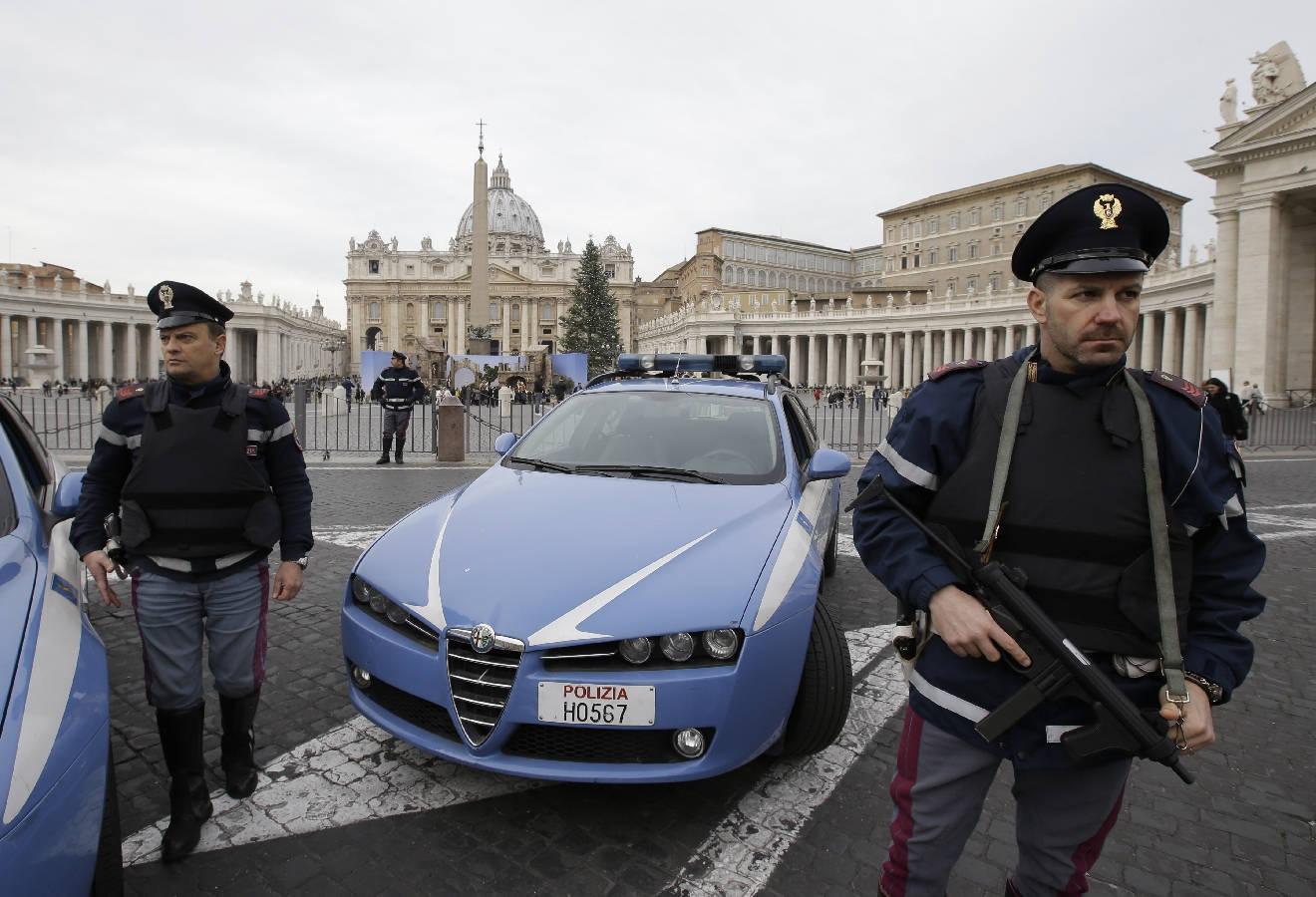 Στους δρόμους που οδηγούν στο Βατικανό, όπου ο πάπας Φραγκίσκος θα τελέσει τη λειτουργία των Χριστουγέννων στη βασιλική του Αγίου Πέτρου απόψε, περιπολικά της αστυνομίας και τζιπάκια του στρατού έχουν αναπτυχθεί κάθε 100 μέτρα.