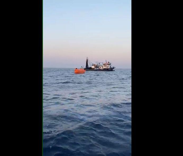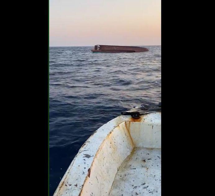 Όπως φαίνεται σε φωτογραφία που δημοσιεύει το Anadolu, το αλιευτικό έχει αναποδογυρίσει.