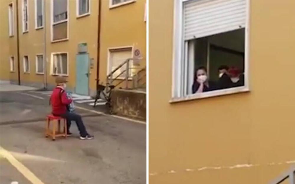 Ενας 81χρονος με το ακορντεόν του έκανε καντάδα έξω από το παράθυρο του δωματίου στο οποίο νοσηλεύεται η γυναίκα του με κορωνοϊό. Το ζευγάρι που είναι παντρεμένο εδώ και 47 χρόνια έχει χωρίσει λόγω της πανδημίας. Ετσι ο σύζυγος αποφάσισε να κρατήσει συντροφιά στη γυναίκα του προσφέροντας της μία μοναδική καντάδα.