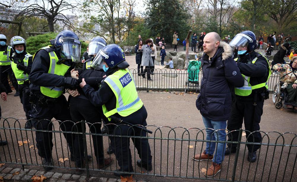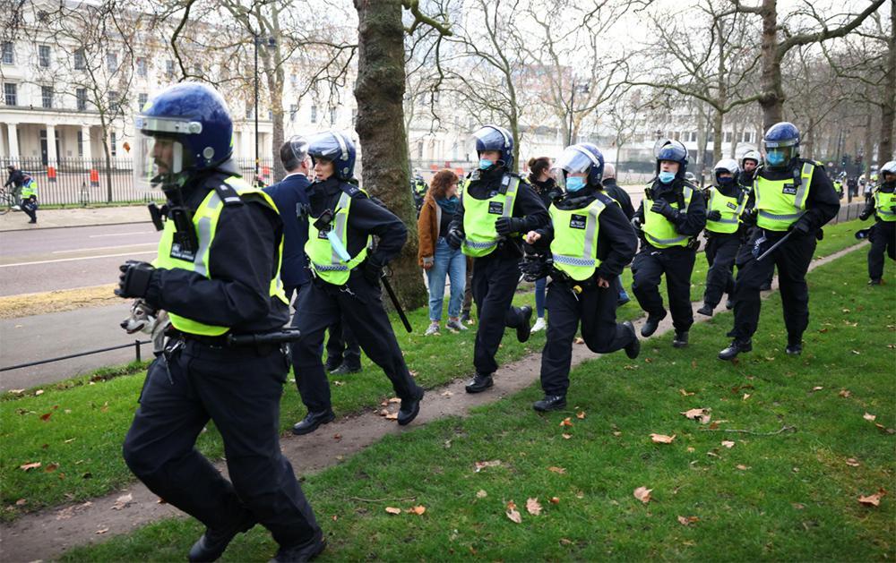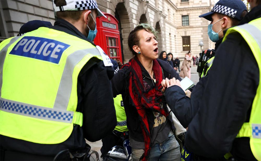 Εκατοντάδες άνθρωποι διαδήλωσαν στους δρόμους της βρετανικής πρωτεύουσας για να διαμαρτυρηθούν για τα περιοριστικά μέτρα. Οι διαδηλωτές φώναζαν «ελευθερία» και κρατούσαν πλακάτ με συνθήματα όπως «σταματήστε να μας ελέγχετε» και «όχι άλλα lockdown».
