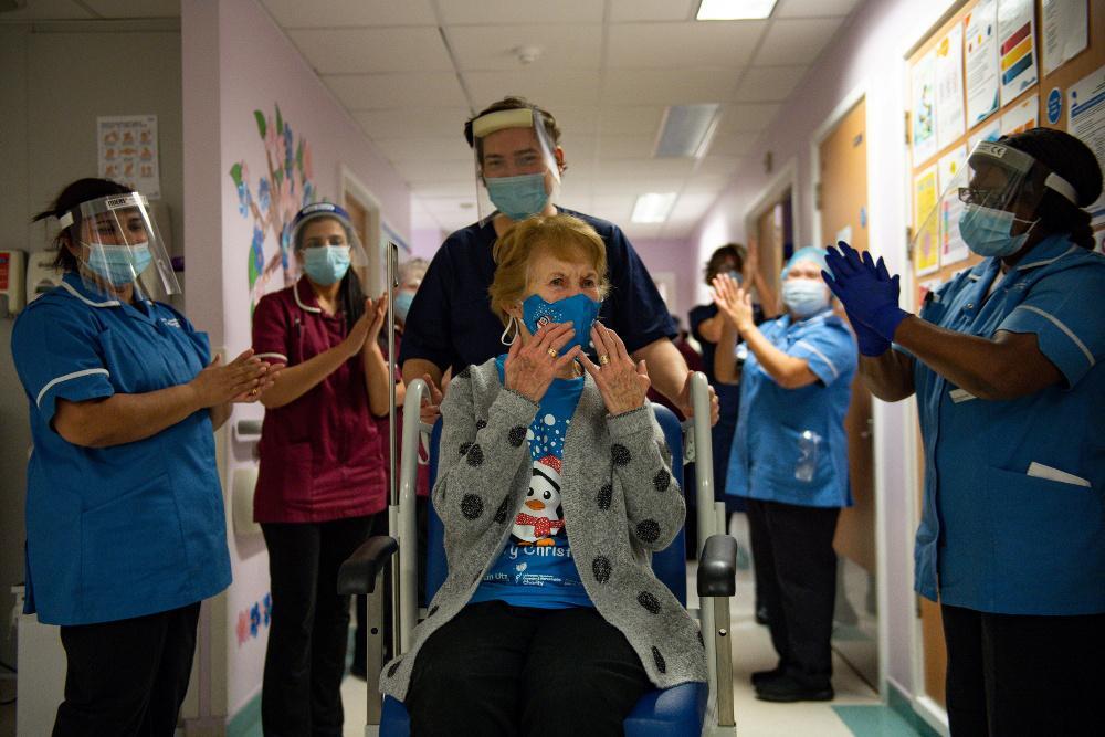 Η Μάργκαρετ Κίναν, μια γιαγιά 90 ετών, έγινε ο πρώτος άνθρωπος στον κόσμο που έκανε το εμβόλιο της αμερικανογερμανικής συμμαχίας Pfizer/BioNTech, σχεδόν μία εβδομάδα μετά το πράσινο φως που δόθηκε για το εμβόλιο αυτό στην εν λόγω χώρα, η οποία θρηνεί σχεδόν 61.500 νεκρούς από Covid-19, τους περισσότερους στην Ευρώπη.