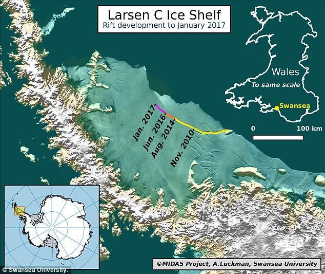 Η πρώτη φορά που οι επιστήμονες διαπίστωσαν ότι η ρωγμή στο παγόβουνο με την κωδική ονομασία Larsen C έχει μεγαλώσει ξαφνικά ήταν τον περασμένο Δεκέμβριο.