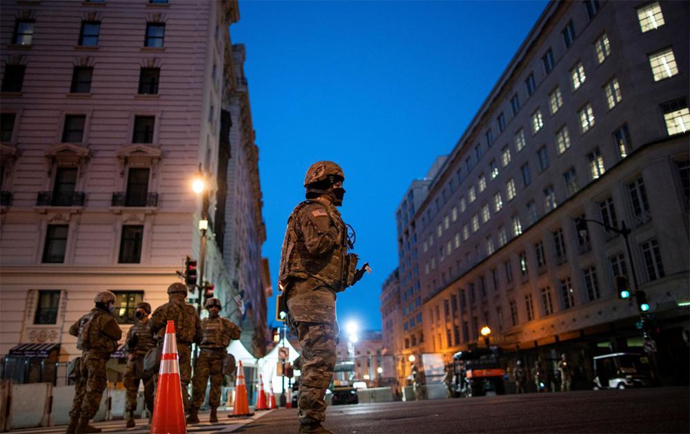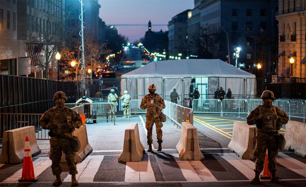 Περισσότερα από 20.000 μέλη της εθνοφρουράς περιπολούν ένοπλα. Συρματοπλέγματα έχουν υψωθεί και τσιμεντένια μπλοκ έχουν στηθεί για να προστατεύσουν μνημεία, όπως ο Λευκός Οίκος και το Καπιτώλιο, ή για να αποκλείσουν ολόκληρους οδικούς άξονες.