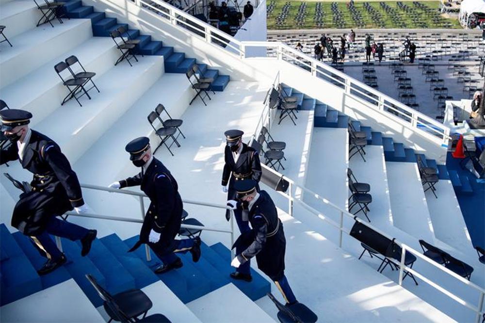 Το «National Mall», η τεράστια εσπλανάδα που οδηγεί στο Μνημείο Λίνκολν στο Καπιτώλιο, και όπου συγκεντρώνονται εκατοντάδες χιλιάδες Αμερικανοί για να χαιρετήσουν τον νέο πρόεδρό τους, θα είναι κλειστό για το κοινό. Στη θέση τους έχουν τοποθετηθεί 200.000 σημαίες.