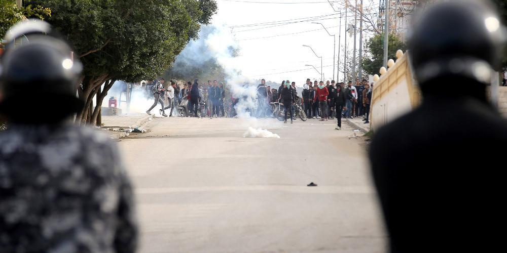 Ο κόσμος εξοργίστηκε με την απόφαση της κυβέρνησης να επιβάλει λοκντάουν ανήμερα της κορυφαίας επετείου της «Αραβικής Ανοιξης» και οι ταραχές σύντομα εξαπλώθηκαν σε όλη τη χώρα. Το υπουργείο Εσωτερικών ανακοίνωσε ότι 632 άτομα συνελήφθησαν μόνο την Κυριακή, χαρακτηρίζοντάς τους κυρίως «νεαρές ομάδες ατόμων μεταξύ 15 και 20 χρόνων, που έκαιγαν λάστιχα και κάδους σκουπιδιών, φτιάχνοντας οδοφράγματα για να εμποδίσουν τις δυνάμεις της τάξης, ώστε να λεηλατήσουν ανενόχλητοι τράπεζες και καταστήματα». Επίσης, το σαουδαραβικό δίκτυο Arab News έκανε λόγο για τουλάχιστον 1.000 συλλήψεις μέχρι χθες, με το υπουργείο Αμυνας να αναγγέλλει την ανάπτυξη στρατευμάτων σε όλα τα μεγάλα αστικά κέντρα και τις πυκνοκατοικημένες περιοχές της χώρας πέρα από την πρωτεύουσα Τύνιδα (Μπιζέρτε στα βόρεια , το λιμάνι Σους στα ανατολικά, Κασερίν και Σιλιάνα στην κεντρική Τυνησία).
