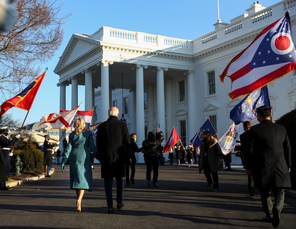 Με την στρατιωτική μπάντα και τη στρατιωτική πομπή να προηγείται, η λιμουζίνα που μετέφερε τον νέο πρόεδρο έφτασε στον Λευκό Οίκο, σε μια ομοσπονδιακή πρωτεύουσα που έμοιαζε με οχυρωμένο στρατόπεδο.
