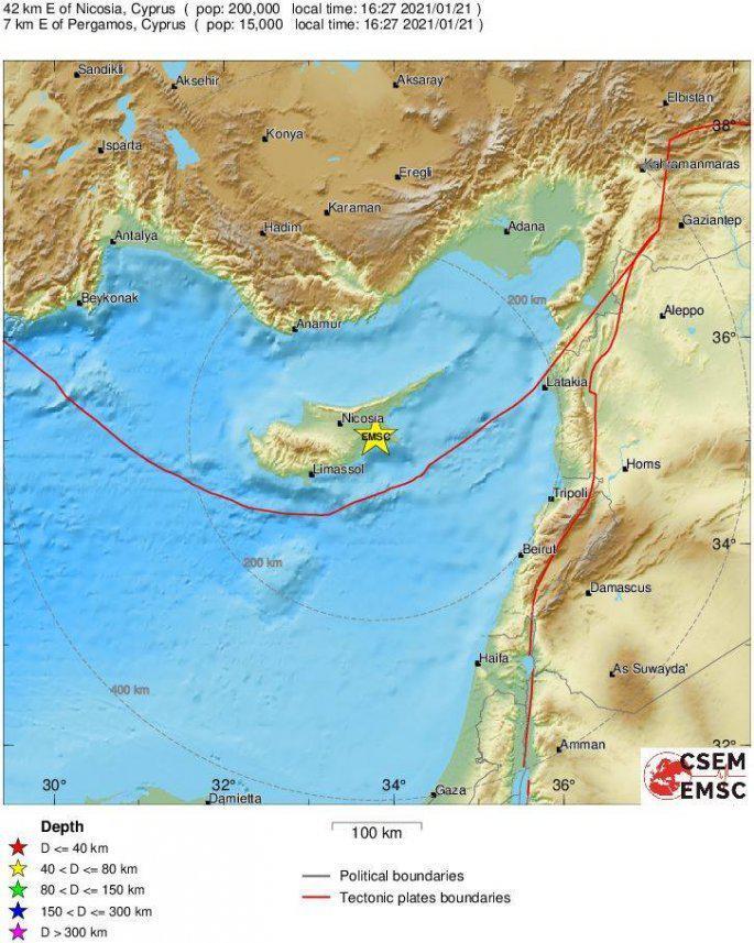 Ο σεισμός 5,4 Ρίχτερ έχει εστιακό βάθος 60 χιλιόμετρα και σημειώθηκε 42 χιλιόμετρα νοτιοανατολικά της Λευκωσίας.
