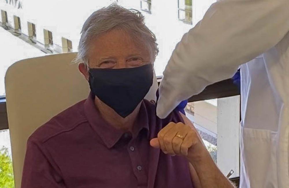 «Ένα από τα προνόμια του να είμαι 65 ετών, είναι πως μπορώ να κάνω το εμβόλιο κατά της Covid-19. Έλαβα την πρώτη δόση αυτή την εβδομάδα και νιώθω υπέροχα. Ευχαριστώ όλους τους επιστήμονες, τους εθελοντές των κλινικών δοκιμών και τους υγειονομικούς υπαλλήλους της πρώτης γραμμής που μας έφεραν σε αυτό το σημείο», έγραψε ο ίδιος κάτω από την φωτογραφία του.
