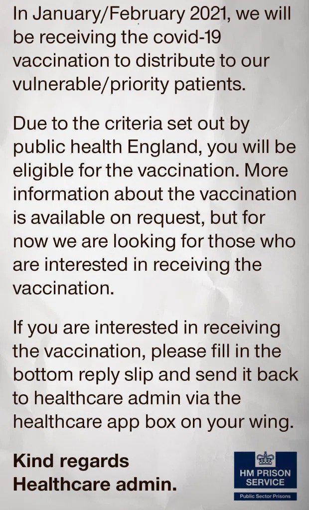 Ο 52χρονος Λέβι Μπέλφιλντ, υπεύθυνος για την δολοφονία 3 ατόμων- μεταξύ των οποίων και ένα 13χρονο κορίτσι- έλαβε ένα γράμμα που του πρότεινε να εμβολιαστεί εντός των επόμενων εβδομάδων, και ενώ μεγάλο μέρος των πολιτών άνω των 70 ετών δεν έχει κάνει ακόμα το εμβόλιο.