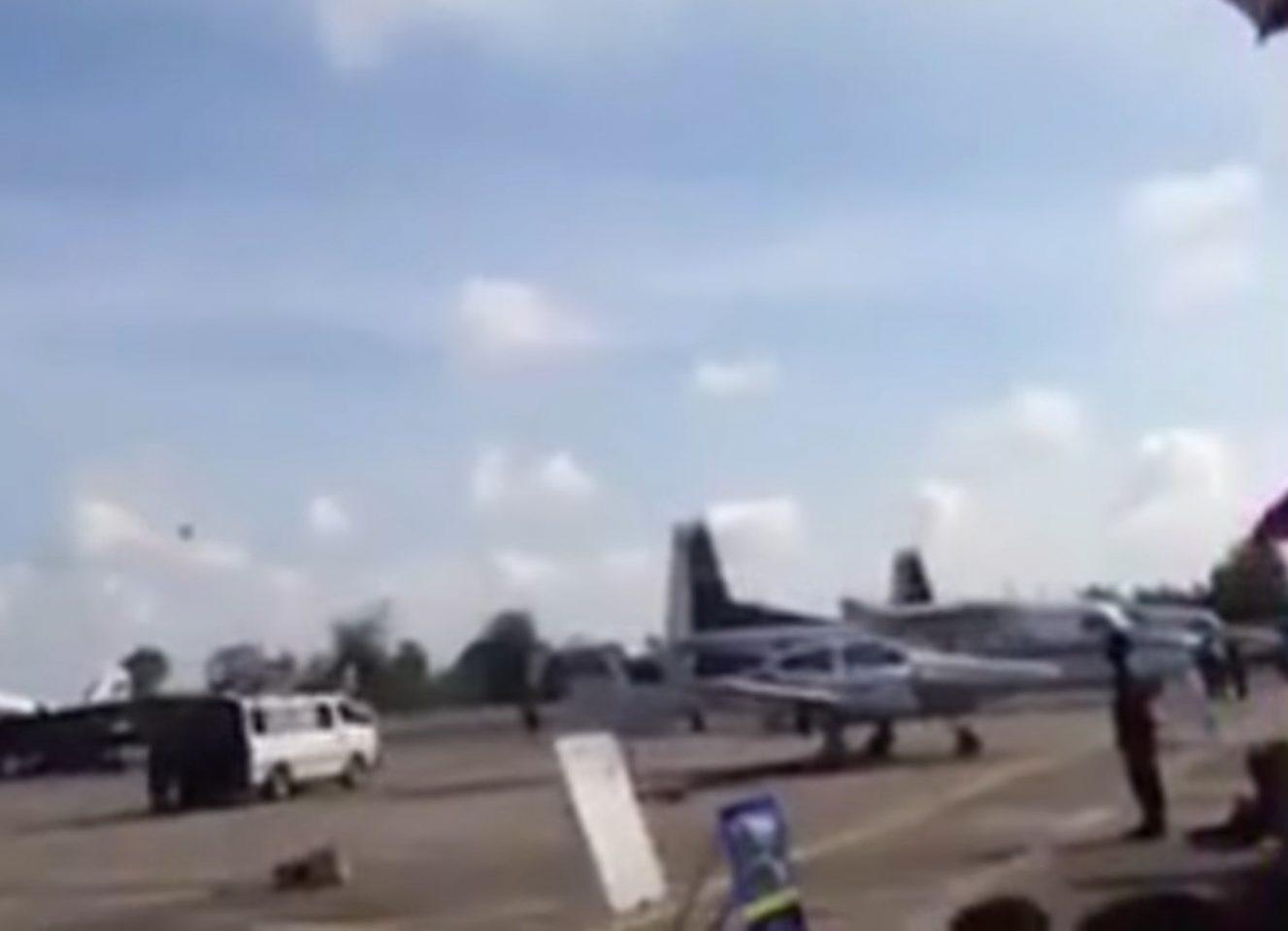 Το αεροδρόμιο είχε κατακλυστεί από γονείς και παιδιά, οι οποίοι έμελλε αντί να χαρούν, να φύγουν συντετριμμένοι. Σε βίντεο, που τραβήχτηκε από θεατή, φαίνεται ένα από τα αεροσκάφη που συμμετέχουν στην επίδειξη να συντρίβεται στο έδαφος κατά τη διάρκεια ελιγμών.