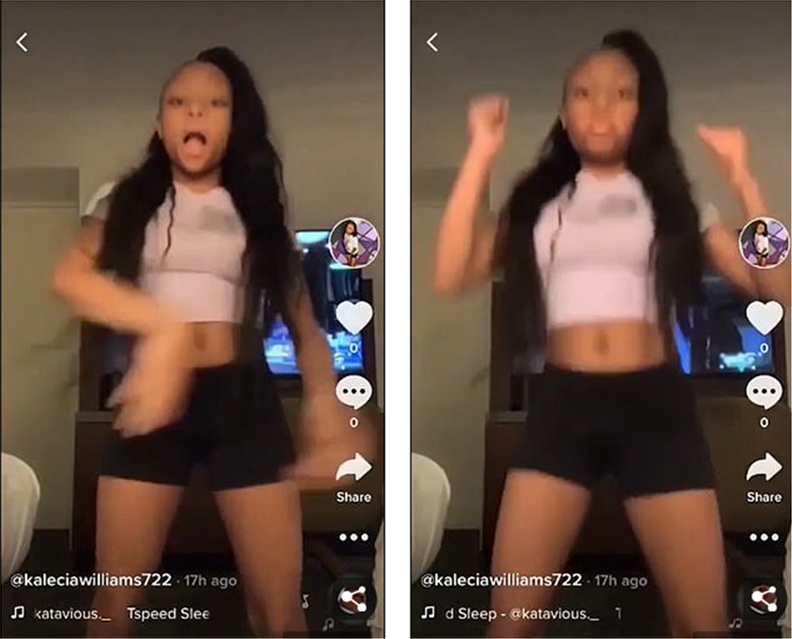 Στο επίμαχο κλιπ που δημοσιεύει το Fox 5, η κοπέλα εμφανίζεται να χορεύει ως τη στιγμή που κάποιος μπαίνει στο δωμάτιο ξαφνιάζοντάς την και το βίντεο διακόπτεται.