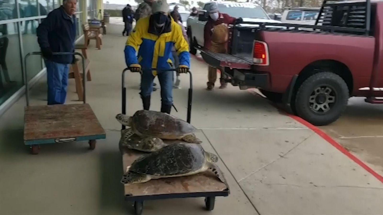 Παρά τις δυσκολίες που αντιμετωπίζουν οι ίδιοι, οι κάτοικοι του Τέξας προέβησαν σε μια μαζική επιχείρηση διάσωσης των χελωνών, γεμίζοντας ένα ολόκληρο συνεδριακό κέντρο με τα ζωάκια που κατάφεραν να συλλέξουν.