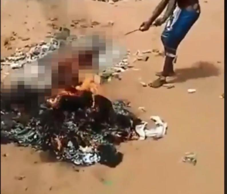 Στο σοκαριστικό κλιπ, οι τρόφιμοι επιδεικνύουν κομμάτια κρέας περασμένα σε σούβλες τα οποία ψήνουν σε μια υπαίθρια φωτιά.